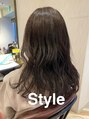 髪質改善トリートメントで髪の状態を整えて、白髪染めもできるオリーブベージュでカラーしました。15%グリーンを混ぜて、緑を感じ過ぎない程度調合しました。髪の毛が軽い印象になり、明るさを下げても透明感を感じることができるスタイルとなっております。