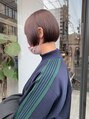 ほんのりラベンダーピンクのベージュカラー!温かみのあるカラーなので肌にもとっても良く馴染みます!カットは少し前上がりのbobでパツっと!お客様一人一人に似合わせて、長さやシルエットこだわってカットしています!
