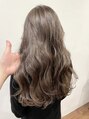 細かいハイライトを施した赤み消しグレージュになります。細かいハイライトを作る事で全体を傷ませすぎずに赤みを抑える事ができます。