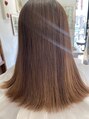 赤みや黄みを消してくれるグレージュからーです!室内で見た時は暗く見えますが、自然光にあたると明るく透けたようなカラーです!前髪や顔まわりは軽くして、パツっとボブでも重くなりすぎないスタイルです!