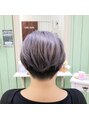 一度ブリーチで明るくした所にパープルグレージュで透明感カラーにしています。ショートに限らずどのレングスにも合わせやすいカラーです!