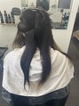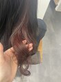 斜めインナーカラーです!上はほぼ黒っぽいですが、次のカラーにも影響しないような配合をしています!光に当たるとグレイっぽいお色で、インナーカラーはくらい赤です!斜めに取る事で、見え方が違く、人とは被らないカラーです!!