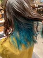ロングの長さでインナーにブルーのカラーを入れています。【静岡/静岡駅/静岡街中/髪質改善/オーガニックカラー/デザインカラー/ハイライト/インナーカラー/ヘッドスパ/トリートメント】