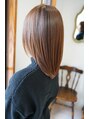 暖色系のカラーは艶と深みが出ます。色持ちも良く、毛先具黄色くなってしまう方におすすめです。カットは、梳き過ぎないよう気をつけて程よく軽くして、レイヤーを入れて厚みをコントロールしています。