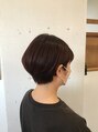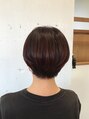 襟足スッキリのコンパクトショートです。耳にかかる位の長さでタイトにおさまります。カラーはピンクの6トーンです。艶感と色味の鮮やさが大人らしさを出してくれます。