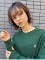 顎下2センチの長さに設定した切りっぱなしボブ。外ハネアレンジしやすい長さと重たすぎない束間カットで透け感を再現◎調整しながらまとまりやすく切っていきます*