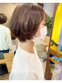 柔らかい質感のショートボブ!お客様一人一人の髪質や骨格に合わせて丁寧にカット◎32mmの方で毛先ワンカール!乾かしてオイルのみのスタイリングでもまとまります♪