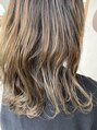 根本をシャドールーツで暗く染めて毛先の明るさを残す事で陰影効果を高くしたカラーになっています。カラーの伸びも気になりにくいデザインになっています。