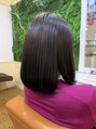 通常はカット・カラーで4~5ヶ月に1度の周期で縮毛矯正をしているお客様です。矯正は新生部メインですが毛先のまとまりも重視したいので保護剤を使い毛先まで施術してます。カットとパーマとカラーは連動したいので、グラデーションでカットしてあります。