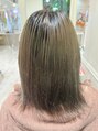 ブリーチベースのお客様。根元の伸びてきた所をブリーチリタッチ後、中間毛先も優しめのブリーチで残留をとります。元々の赤味が強いので根元はしっかり抜くのがポイント。全体に中明度のベージュをのせて柔らかさを演出してくれるピンクも足しました。