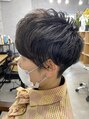 アシンメトリーショートです!片側は、刈り上げスタイル、もう一方は2ブロックスタイルのアシンメトリーです!かなり長短を付けたスタイルですが、ショートに慣れている方でしたら初めてでも挑戦しやすいスタイルです!