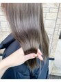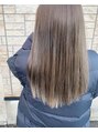 ダブルカラーでオリーブグレージュに◎ケアブリーチを使用し、ダメージレスに明るい色を楽しめます!