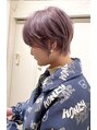 元々癖毛だったので、癖に沿わせてカットして扱いやすいコンパクトマッシュショートに。ダブルカラーで、ピンクバイオレットに♪