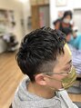 サイドは3mmでカット、バックは余り短くなり過ぎないようにカット、上のヘアーは緩パンということで根本から梳き軽さを出しました。※カットだけでツーブロックだと全く寝ない直毛ヘアー