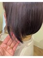 コンパクトにまとまるボブ。ライン感を出して丸みカットしてあるので自然なワンカールスタイリングがしやすいです。シンプルなスタイルが好き方におすすめです。カラーはブリーチベースにパープルアッシュ!透け感が可愛く色落ちも楽しいカラーリングです(^^)