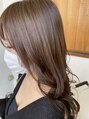 伸ばし中のスタイルだったので、あまり長さを切らないように、毛先をメンテナンスカット☆ラインはブラント気味に真っ直ぐ切ってあります。カラーはベースの11レベルくらいの明るさを活かして、サファイアベージュをオンカラー♪透明感の出るスタイルです☆