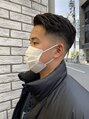 定番のサイドパートスタイル。フェードのメリハリを加えて締まりのあるメンズスタイル
