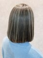 2回全体ブリーチした状態で、明るく残したい部分をミルクティーで、その他は暗めのグレージュで大人カッコいい雰囲気に☆