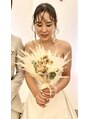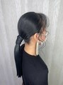 タイトなローポニー前髪はくるくるウェーブ巻きにしてあります