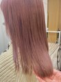 - 一回ブリーチで、ナチュラルなピンクベージュに。ケアブリーチでダメージを最小限に抑えています。