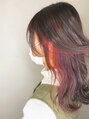 イヤリング部分の幅広めにしてブリーチ後、トップは6レベルのグレージュ系カラー、イヤリング部分はピンクとパープル2色に分けてカラーしました。