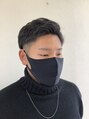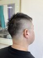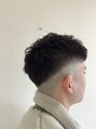 通称マンバンヘアー、もしくはサムライヘアーです。サイド、バック共に高めの刈り上げ、トップのみカラーと強めのスパイラルパーマを掛けて、後ろで結んだスタイルです。結ぶだけなので、お手入れ簡単!長さはあっても清潔感が出せます!