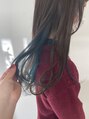 インナーカラー!ベースはグレージュカラーでインナーはブルー。ブリーチ必須カラーですが、インナーカラーの部分は褪色してきたらまた別のお色も楽しめます♪巻いたりすると、とても可愛いと思います♪