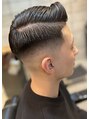 0ミリから刈り上げたスキンフェードスタイル。サイドパートでビシッとスタイリング。