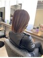 赤味が強い、美容室に中々行けない、けどオシャレなヘアスタイルにしたい。そんな方にオススメ♪グラデーションカラーで根本を暗めにしているので伸びたリタッチが気になりにくい(^^)カットは厚みのないボブ。首元スッキリでスタイルが良く見えるように☆