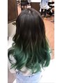 ライムグリーン&エメラルドグリーンのグラデーションMIXカラー★ベースは地毛のままコントラストを最大限利かせていくことで存在感をプラス☆ブリーチベースは1~2回あれば作れる色味になります★