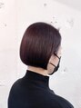 ラインの綺麗な顎ラインのボブヘア♪普通~細めな髪質の方にお勧め☆カラーはパープル系ブラウンで大人な艶髪カラーに☆