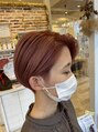 人気のハイトーンピンク!いつものピンクにしてるけど、、少し飽きてきた、、と言う方にオススメ☆ ピンクとオレンジのMIX(*^o^*)長さはこれからボブに伸ばしていくので、上の長さが伸びるまではツーブロックと襟足刈り上げでスッキリ♪♪