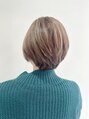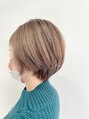 ハイライトを活かした、明るめカラーデザイン。まるみを意識したショートボブスタイルに、コントラストが映えます。明るく淡い色味を出したい場合はケアブリーチでベースを明るめに持ってきてから重ねるのが◎柔らかなベージュは大人女性にも♪