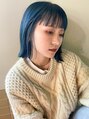 ちょうど肩につく長さでのパチッとラインの出るボブ前髪もワイドにぱっつんストレートがポイント!ブリーチ必須のネイビーブルー光に当たると透明感のある水色にも見えます!色落ちもグレーに抜けて長く楽しめるカラーです◎