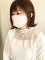 ピンクベージュ×外ハネボブ巻いても巻かなくてもかわいいボブです!