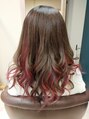 スライスでブリーチを入れてその後、ベリーピンクカラーをのせています。ストレートアイロンでもカールでもピンクカラーがどこからか出るように、スライスを入れました♪【気に入ったスタイルはブックマークしてご提示していただければご案内がスムーズです】