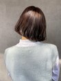 薄く作ったバングに柔らかくパーマをかけています。普通のボブスタイルに飽きてしまった方や少し動きをつけたい方におすすめしています。全体は9トーンのブルーグレージュカラーに。大人っぽく上品に仕上げています。