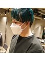 メンズブリーチツーブロックヘア。マニッシュなブルーで。