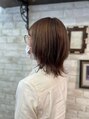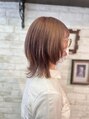 ウルフスタイルでカットしてナチュラルに外ハネにスタイリング。カラーは全体ブリーチ後にミルクティーベージュをオンカラーしました。