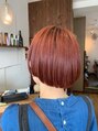 ショートボブ 個性的 オレンジ系 レッド、ピンク