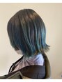 福山市美容室Caaryビビットターコイズブルーインナーカラー