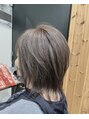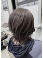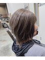 ハイレイヤーカットにハイライトを絶妙に入れて透明感のある明るめのカラーで染めて、白髪をぼかしてます。ハイライトをいれることで立体的に髪が動き、ふんわり、透明感を楽しめます^_^徐々にハイライトが浮き出てくるのでそれもまた楽しんでいただけます。