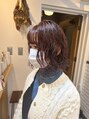 少し細かめに巻いたくりくりとしたパーマ、そしてカラーもピンク味のお色で合わせて愛されスタイルに仕上げてます。スタイリング剤にはムースとオイルでとウェット感を出し艶のある質感にしてます。色もパープルベースにピンクを混ぜてほど良いかわいさに**