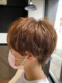 マッシュベースのスタイルにサイドが収まるようにツーブロックしています。可愛さがのこるように襟足は刈らない。