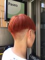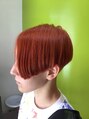 2ブロックのアシメトリーショートスタイルカラーはオレンジティー