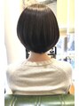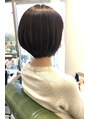 ひし形フォルムのレイヤーボブ。前髪からつながる顔周りにレイヤーを入れて短くします。裾は厚めに残す事で毎日のスタイリングが楽になります。梳きバサミを使用しないので、まとまりのある仕上がりに。斜めバングで軽さと小顔に。明るい白髪染めが可能です。