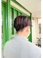くせ毛も活かしながらまとまり良くなるようなカット♪少しずつ前下がりに調整していきます◎