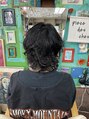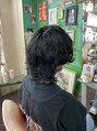 ウェットな質感でしっかりかけたツイスト気味のパーマがカッコいいウルフカットのスタイルです。