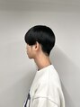 全体根元のクセをストレートにし前下がりのラインが出るようにカット。