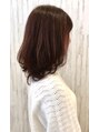 肩下のミディアムスタイル、レイヤーを入れて重くならないようにシルエットを調整しました。カラーは濃いめのピンクベースの中にハイライトを入れてさり気なくアクセントにしています。